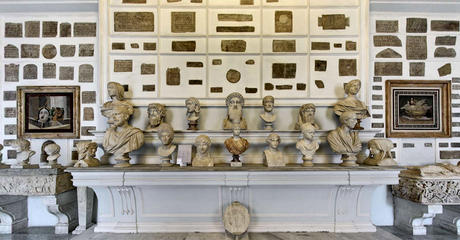 Durante il XVIII secolo la sala si arricchì di reperti sistemati in vetrine orizzontali: particolarmente interessanti i frammenti di Tabulae Iliacae , che riproducono episodi della guerra di Troia, commentati da piccolissime iscrizioni in greco.