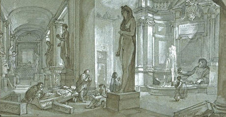 Atrio e cortile del Museo Capitolino (Charles-Joseph Natoire, 1700-1777 - Paris, Louvre, Cabinet des Dessins)